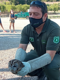 Aquesta tarda els membres del cos d'agents rurals de les Borges Blanques han realitzat l'alliberament dels exemplars de gamarús a l'esplanada de les autocaravanes.